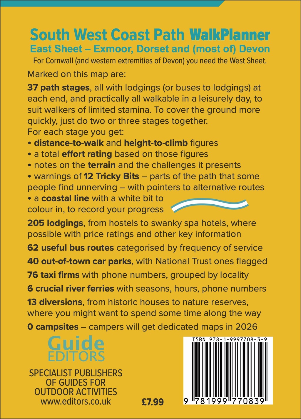 South West Coast Path WalkPlanner – Lodging Edition – East Sheet
